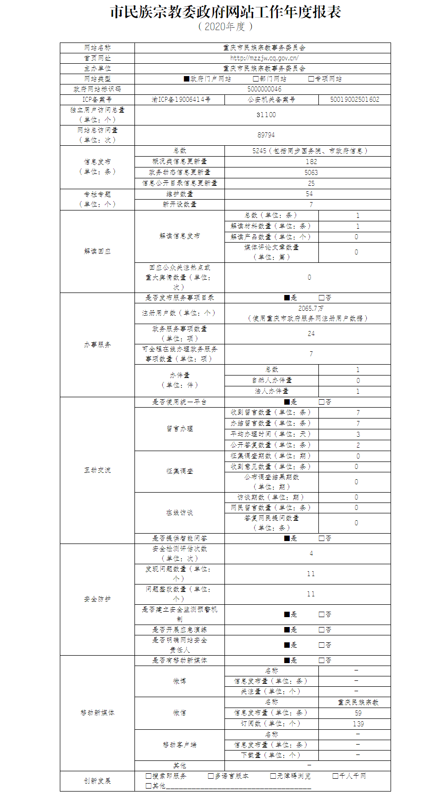 重庆市民族365bet备用器下载_365真正的官网_365bet不能注册事务委员会2020年政府网站工作年度报表